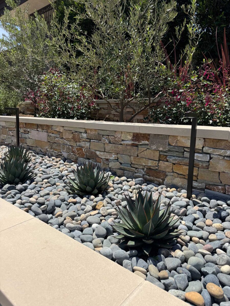 Agave was chosen for its sculptural qualities, sage for its texture and fragrance, and olive trees for their timeless beauty and shade. Each plant was positioned to highlight the new architectural framework, working in harmony with the stone walls and the home’s exterior.
